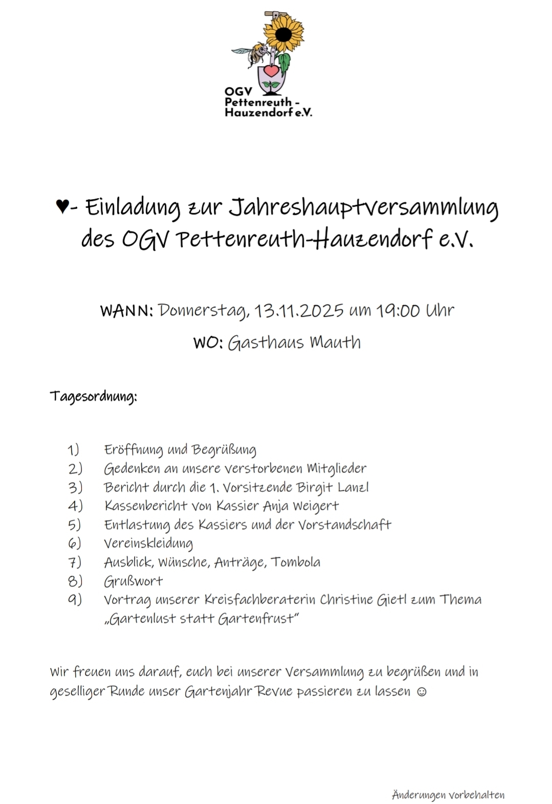 Wir laden alle unsere Mitglieder und auch die, die es noch werden wollen zu unserer Jahreshauptversammlung auf die Mauth ein.