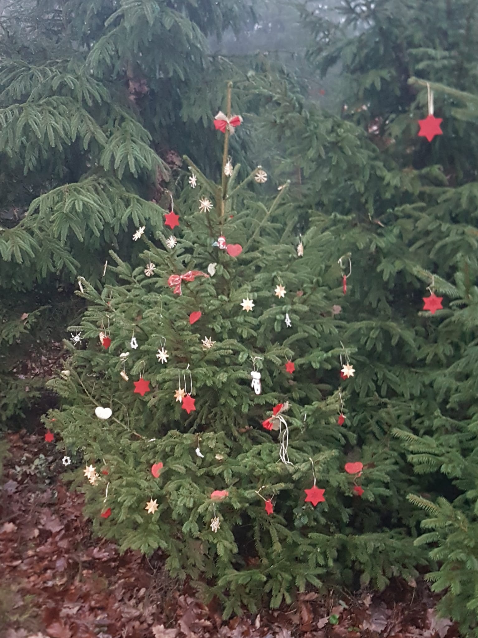 Im Dezember haben wir eine kleine Fichte weihnachtlich geschmückt.
