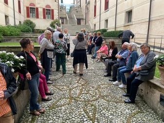Mit einem Zwischenstopp zur Brotzeit am Brenner (bei schattigen Temperaturen) wurde es in der Gegend am Gardasee immer wärmer. In Bassano del Grappa war die 2. Pause eingeplant, einge genehmigten sich einen Grappa auf der Piazza, die anderen ein großes Eis. Dann erreichten wir unser Antony Palace Hotel in Marcon.