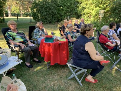 Eine kleine Gruppe vom OGV Lorenzen hatte es sich im Kreislehrgarten mit Essen, Getränke und Mobiliar gemütlich gemacht und den schönen Sommertag genossen.