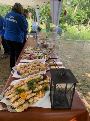 Wieder einmal genossen die Besucher die liebevoll garnierten Brötchen, Kuchen und Baguette-Scheiben mit Wasser, Bier, Wein und Prosecco.