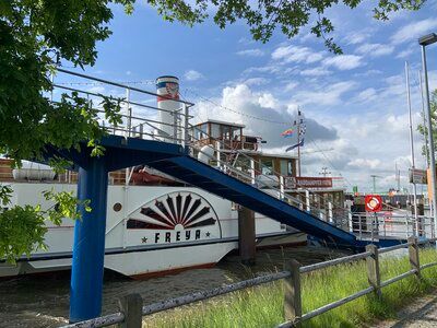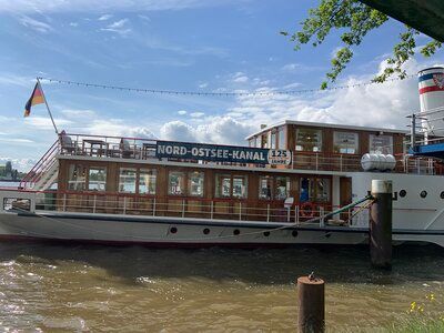 Am nächsten Tag brachte uns unser Busfahrer Markus nach Brunsbüttel, wo der Schaufelraddampfer "Freya" schon auf uns wartete und uns Richtung Kiel fast 100 Km schipperte. An Bord wurde uns ein Brunch serviert und auch noch leckere Kuchen und Torten. Der Nord-Ostsee-Kanal wurde vor über 100 Jahren gebaut, um den Handelsschiffen den Umweg über den Skagen zu ersparen. An seinen Ufern reihen sich weite Wiesen, Dörfer, stattliche Landsitze und Herrenhäuser. Unter ca. 10 Hochbrücken gleiten mächtige Frachter und kleine Sport- und Segelboote Seite an Seite mit Radfahrern an den Ufern vorbei. Kurz vor Kiel ging es durch eine große Schleuse bevor wir in die Kieler Bucht einfuhren. Hier begegneten wir riesen Kreuzfahrtschiffe, Containerschiffe, Kriegsschiffe und Segelboote. Die Villen an der Bucht sind überragend. Am Kai erwartete uns bereits Markus mit dem Bus, der uns wieder zum Hotel zurück brachte.