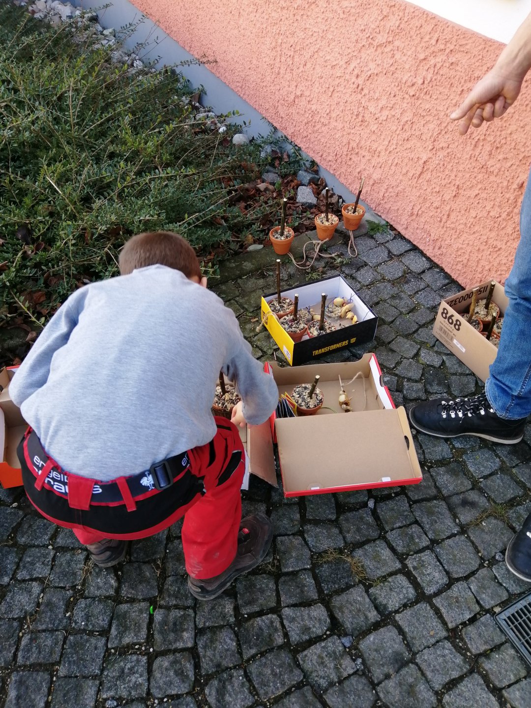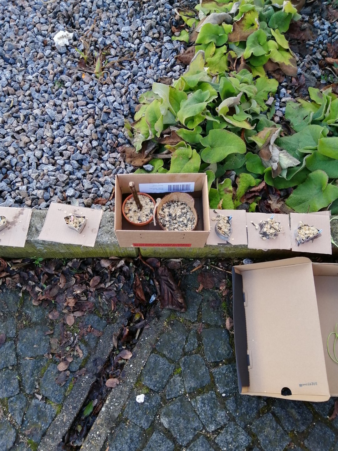 die beiden Gruppen jeweils mit ihren Arbeiten fertig waren, durfte jeder in kleine Plätzchenformen die restliche Vogelfuttermasse verteilen. Auch diese werden dann in den Bäumen aufgehängt und dienen den Vögeln als Futterquelle.