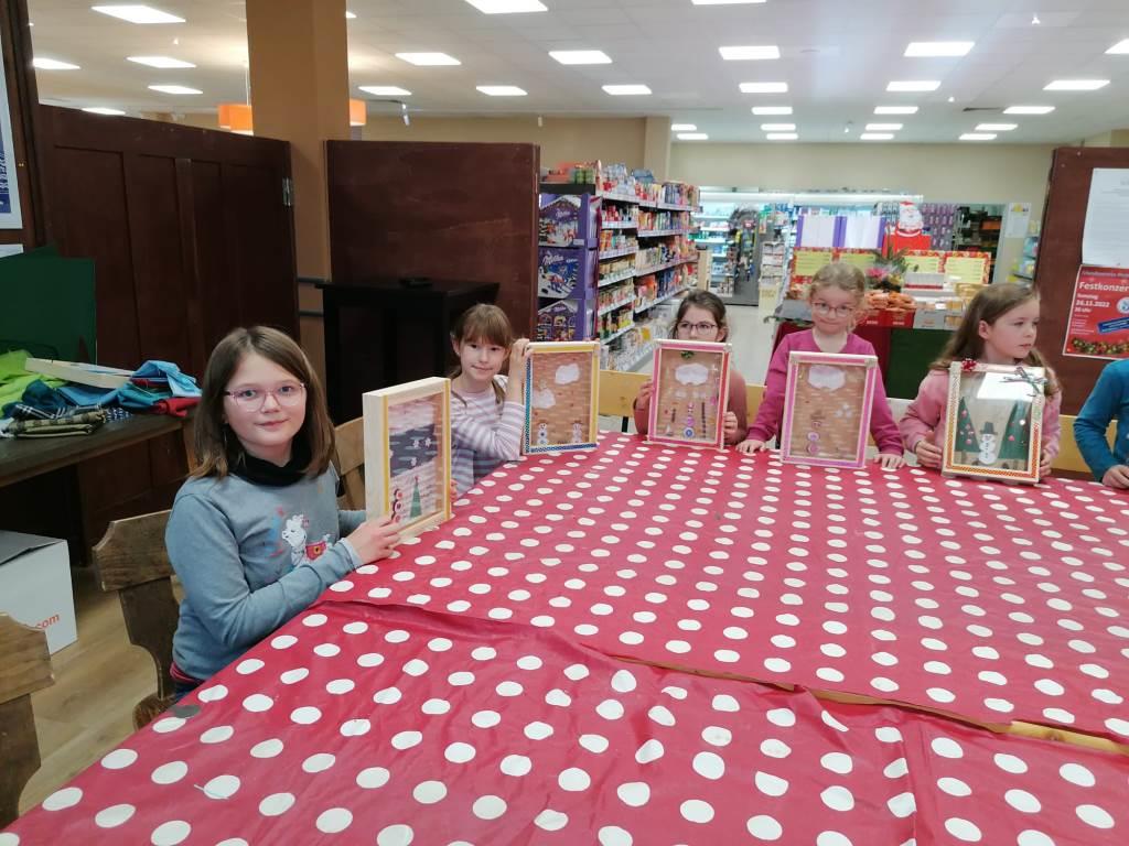 Insgesamt 15 Kinder trafen sich am 12.11. zur letzten OGV-Kindergruppenaktion in diesem Jahr diesmal an einem besonderen Ort. Im Cafe Dezentral des Pettendorfladens ging es ans Basteln von Winterbildern. Dazu hatten die Betreuerinnen einiges Material vorbereitet sowie je einen 3D-Holzrahmen für jedes Kind besorgt.