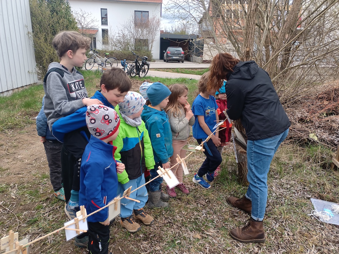 Hierzu hat Frau Sofia Röder von der LBV-Umweltstation Regenstauf viele tolle Informationen und Spiele mitgebracht. Wir durften verschiedene Vogelfedern untersuchen und die Flügelspannweite von Elstern oder Schwänen schätzen. Außerdem haben wir zahlreiche wertvolle Tipps bekommen, wie wir unsere selbstgebauten Vogelhäuschen am besten befestigen. Das muss aber noch bis zum Herbst warten.