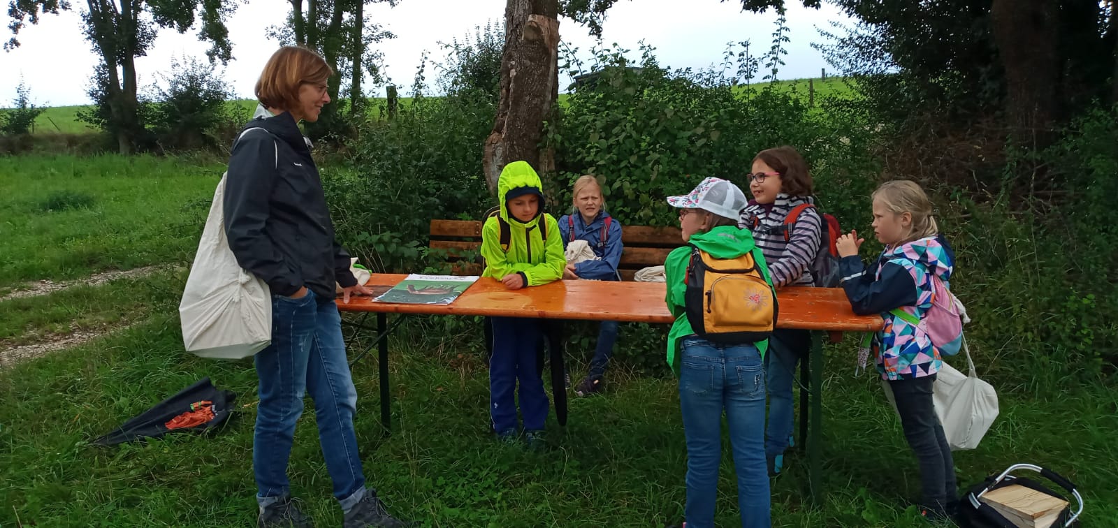 Wisst Ihr, was Triticale ist? quellen unsere Mülltonnen nicht über? Kennt Ihr einen Baum, der keine Blätter hat? Welches Geräusch macht eine Fledermaus? Wie sieht der Wolfsegger Wolpertinger aus? Kinder, die an unserer Wanderung mitmachten, konnten jetzt diese Fragen beantworten. Aber der Reihe nach…