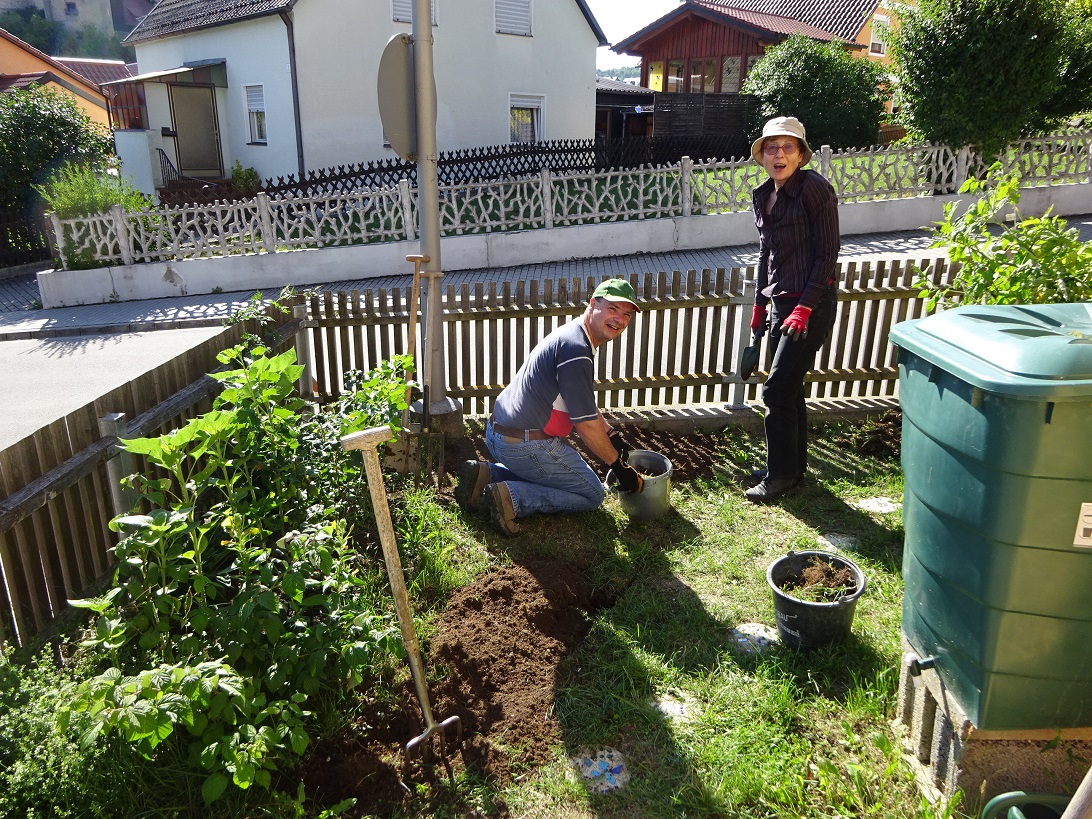 Dazu musste ein Teil des Wiesenstreifens mit Muskelkraft umgegraben werden. Diesbezüglich fragte die Schule beim Vorsitzenden Erhard Unger, seinerseits jedes Jahr an der Schule als Imker-Referent tätig, nach. Sofort sagte dieser seine Hilfe zu.