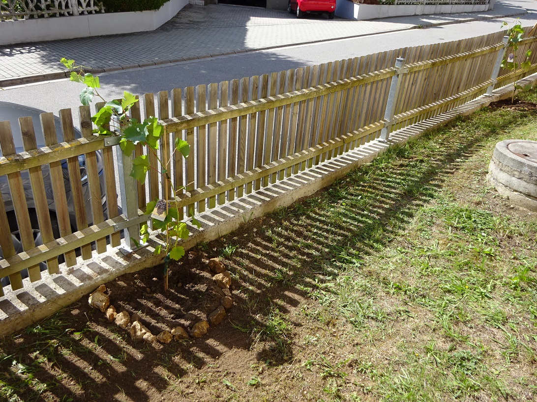 Am Samstag rückte nun eine Abordnung des OGVs - Erhard Unger unterstützt von Jovita Ahrlich, Alfred Issel und Thomas Mayer - mit Spaten und weiterer Gartengerätschaft an und machte sich an die Arbeit. Unser Schulgarten hat nun ein richtig tolles Staudenbeet. Am Zaun entlang pflanzten die fleißigen Helfer die neuen Weinstöcke ein und rahmten sie sogar liebevoll mit Steinen ein.